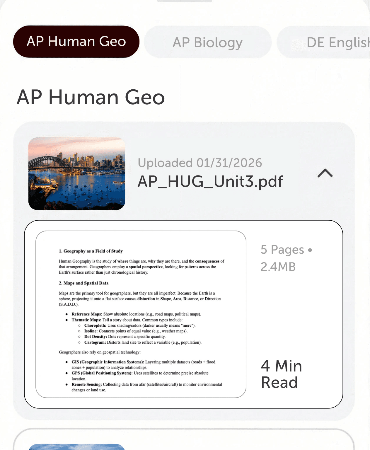 Automatically sorts every upload into the correct class and unit. Your digital binder stays perfectly organized, even when you're in a rush.